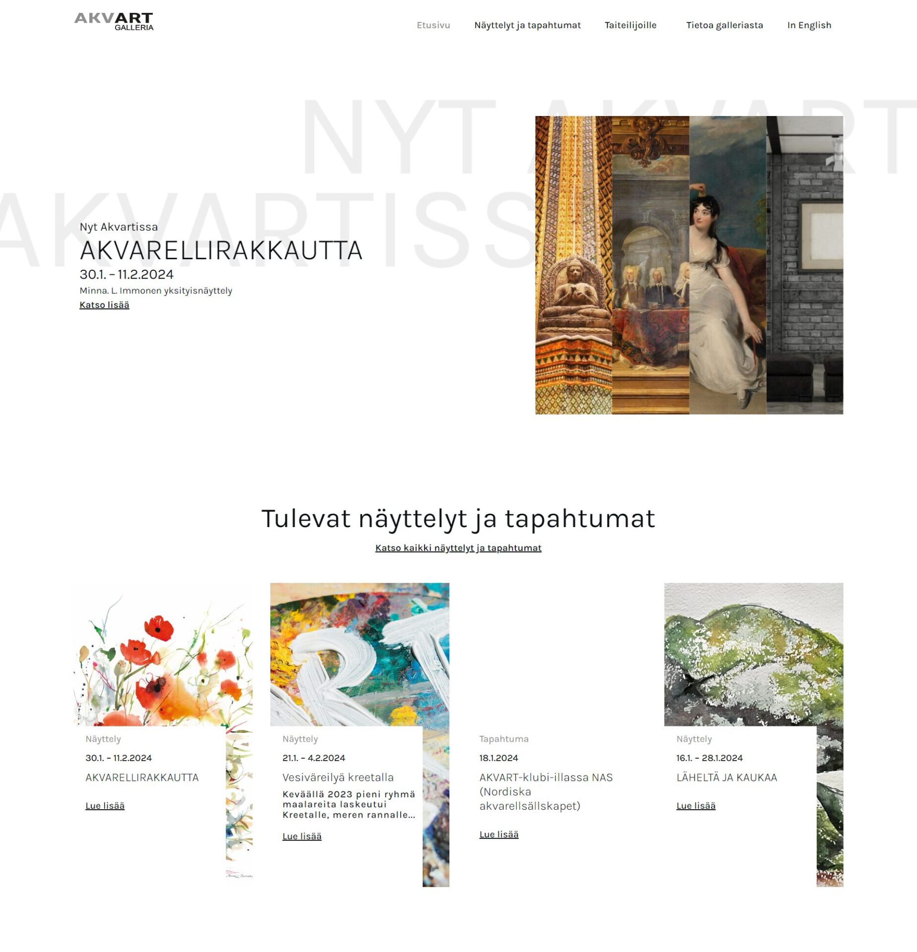 AKVART galleria on Suomen ensimmäinen ja ainoa akvarellitaiteeseen keskittynyt galleria. Vuodesta 2009 lähtien tavoitteemme on ollut näyttää miten monipuolinen ja upea tekniikka akvarelli on.