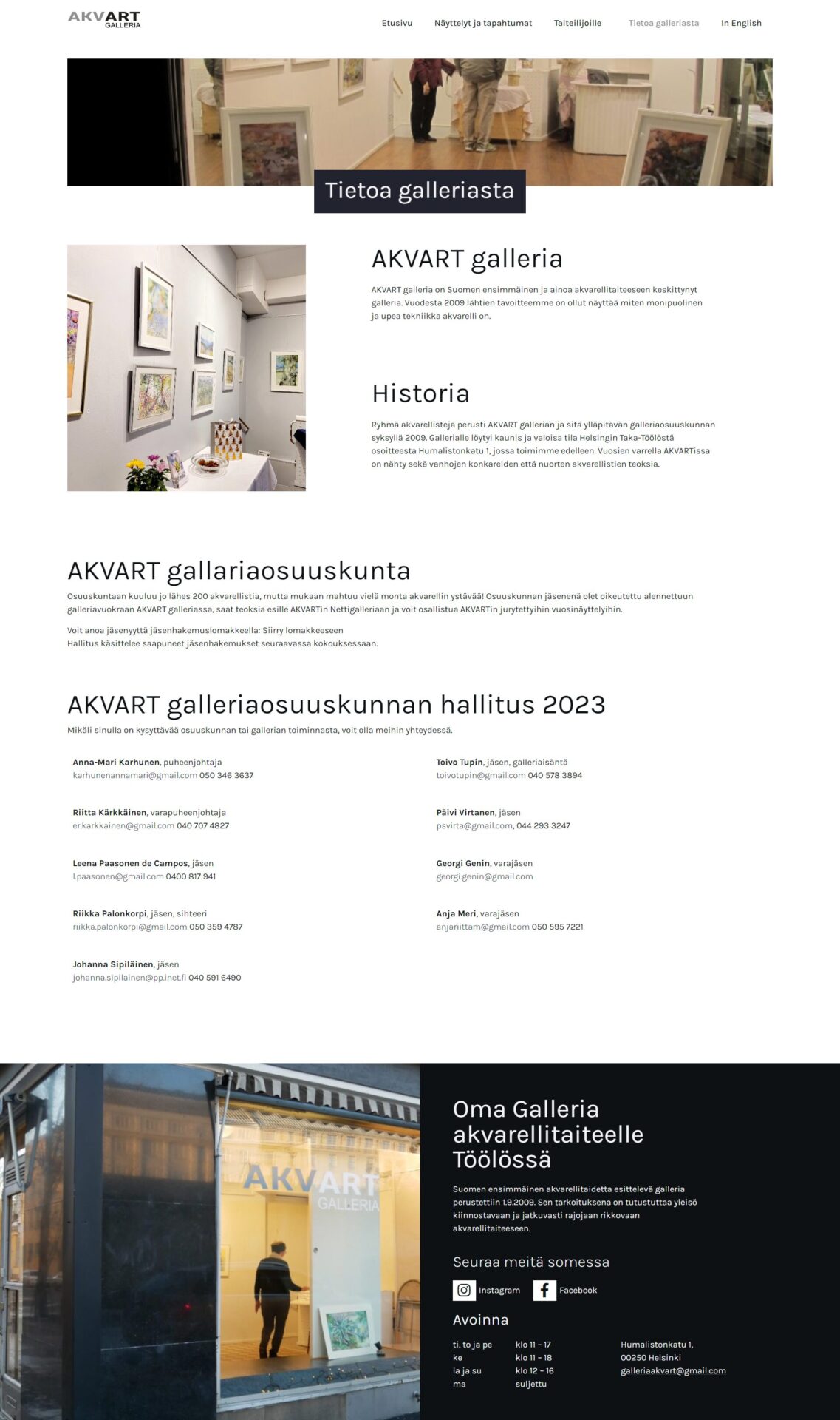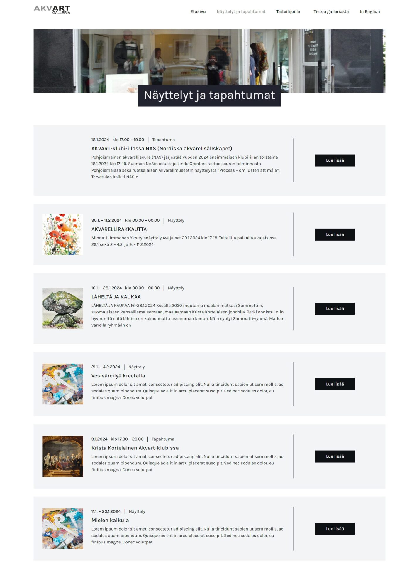 Asiakkaalla oli selkeä käsitys siitä millaiset sivut ovat tyylikkäät ja galleriaa kuvaavat. Vertailukohtia ja esimerkkejä etsittiin maailmalta. Lopulta omalta tuntuva ilme löytyi ja sivuista päästiin tekemään raikkaat ja selkeät niin katsella kuin käyttääkin.