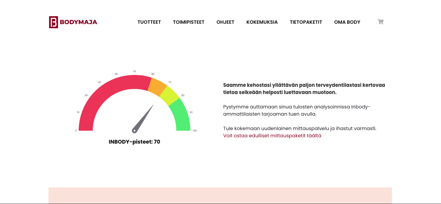 Verkkosivut, verkkokauppa ja integraatio Inbody-pilvipalveluun.