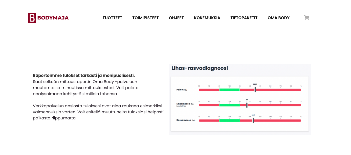 Oma Bodyssa tarkasteltavat selkeät mittaustulokset ja analyysit erottavat palvelun kaikista muista kilpailijoista.