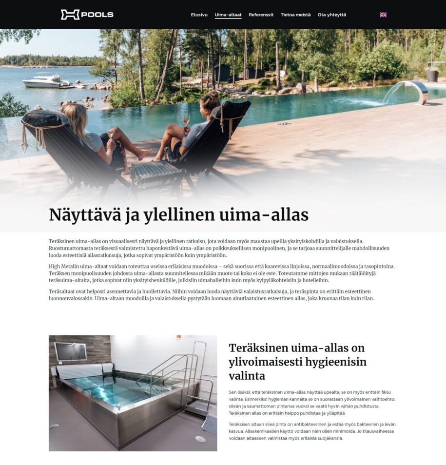 Yritys halusi avata täysin uuden ja visuaalisesti näyttävän verkkosivuston uima-altaille.
