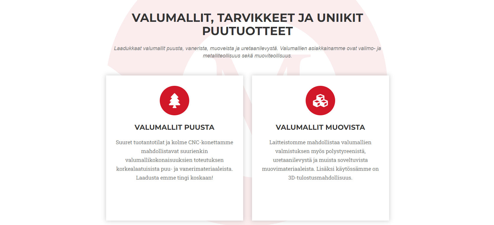 Ammattitaitoa yrityksestä löytyy ja nykyisellä kalustolla pystyy luomaan moninaisiin tarpeisiin olevia lopputuotteita puusta, muovista ja uretaanilevystä.