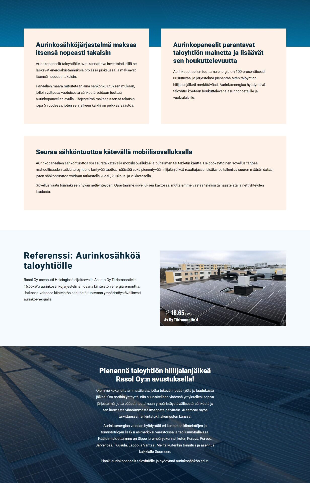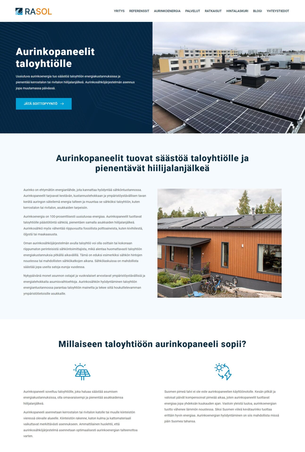 Rasol Oy on täysin kotimainen uusiutuvan energian asiantuntija. Yritys toimittaa ja asentaa avaimet käteen - aurinkosähköjärjestelmiä, sähköauton latausasemia sekä ilmalämpöpumppuja minne päin Suomea tahansa.