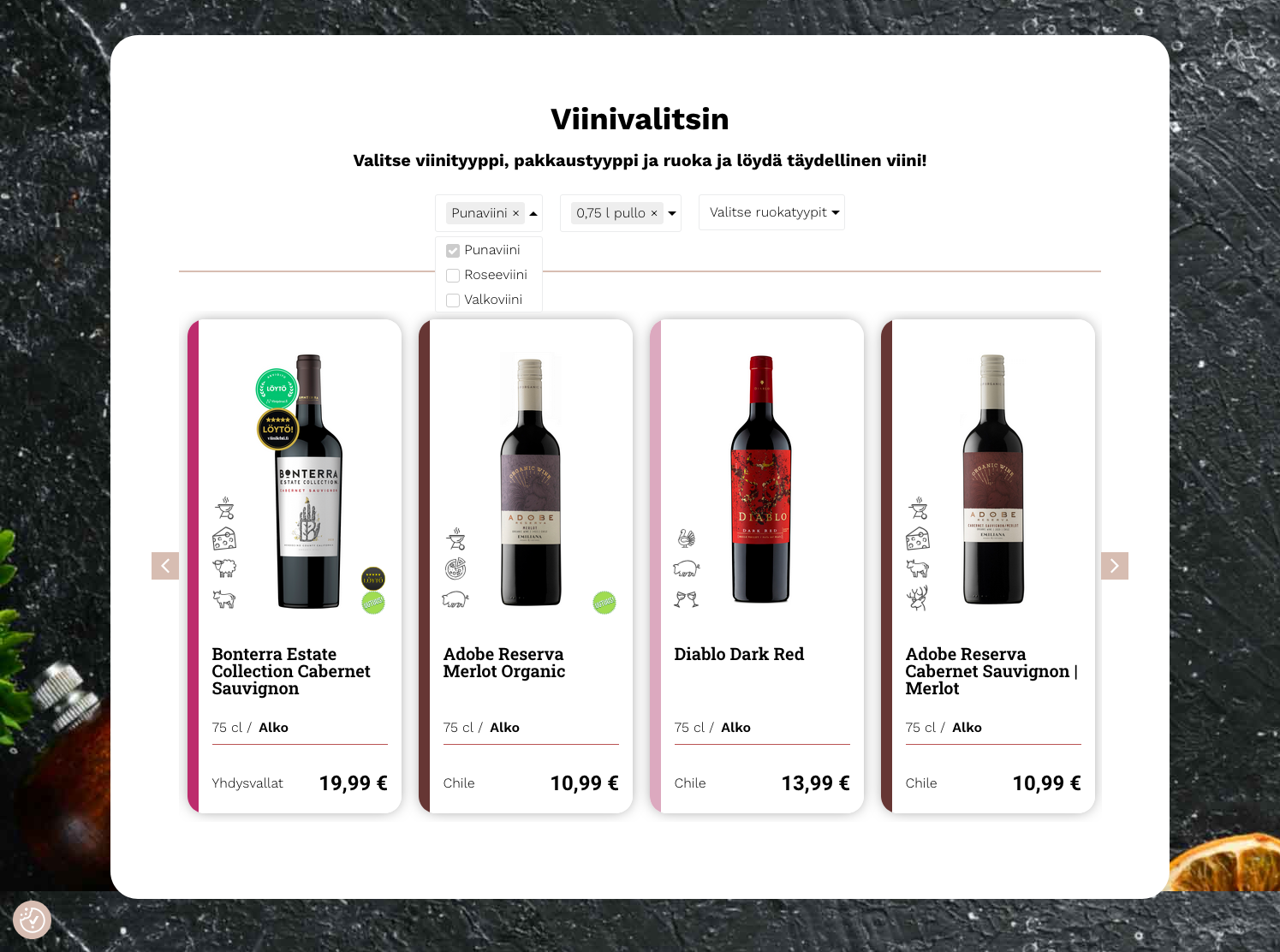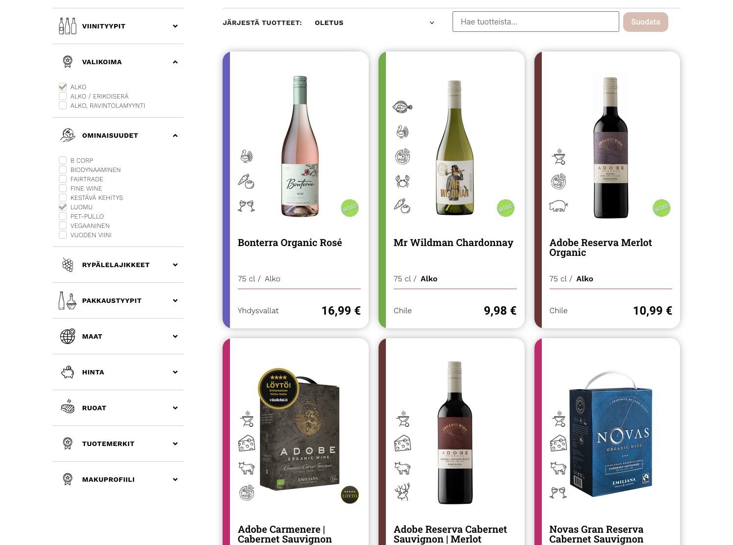 Tiivis yhteistyö asiakkaan kanssa mahdollisti yrityksen todellisiin liiketoimintatarpeisiin vastaamisen. Uusi sivusto on täysin ammattilaisia palveleva kokonaisuus. Kuluttajille toteutettiin täysin erillinen viinejä ja ruokia esittelevä makuhetkiä.fi.