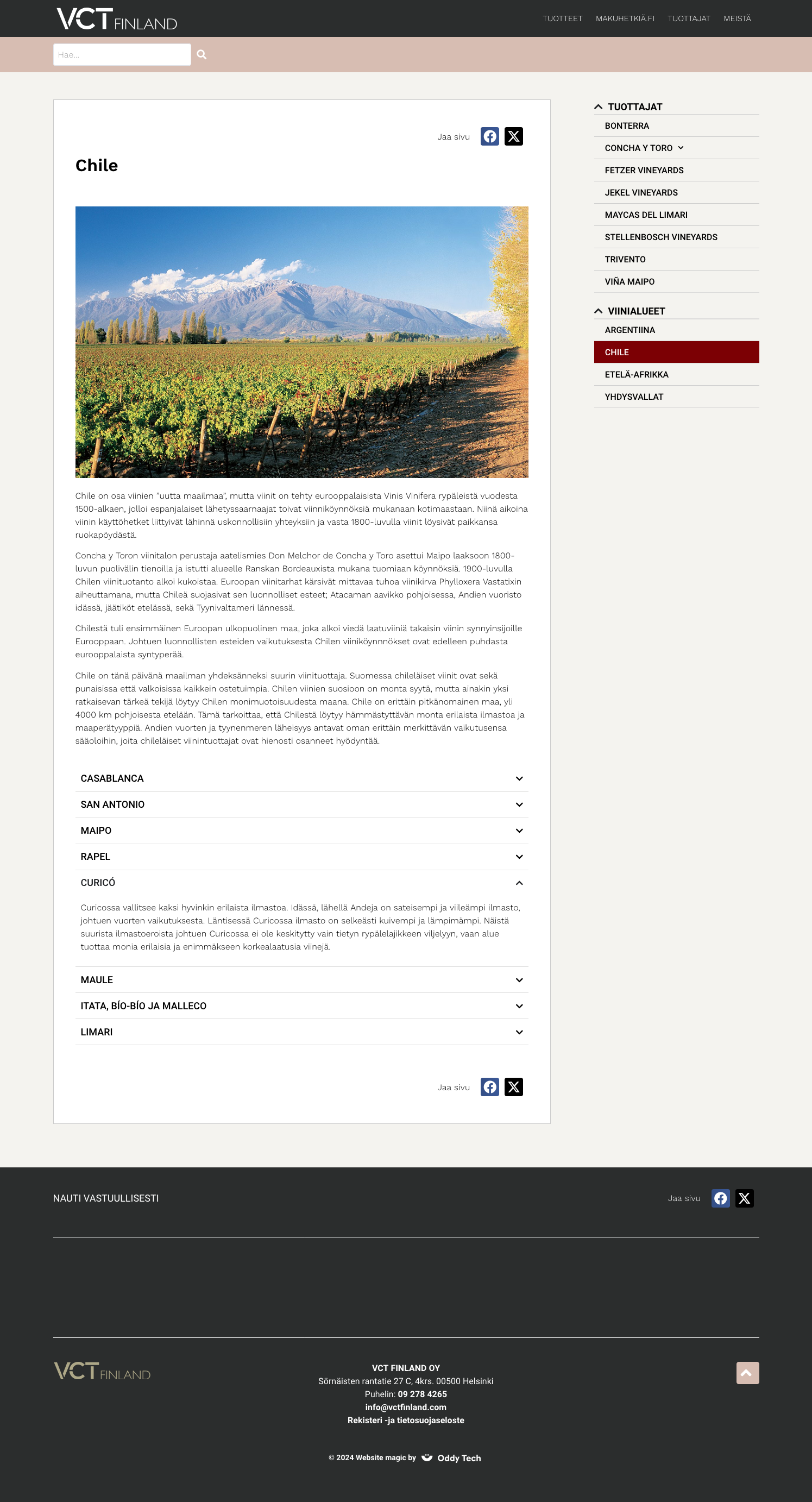 VCT Finland Oy on Chilen suurimman viinitalon Concha y Toron tytäryhtiö. Pohjoismaissa Concha y Torolla on tytäryhtiöt Suomen lisäksi myös Ruotsissa ja Norjassa. Concha y Toro Finland viinin maahantuontiyritys perustettiin Suomeen vuonna 2009. Yrityksen nimi muutettiin vuonna 2015 ytimekkäämpään muotoon – VCT Finland (=Viña Concha y Toro Finland).