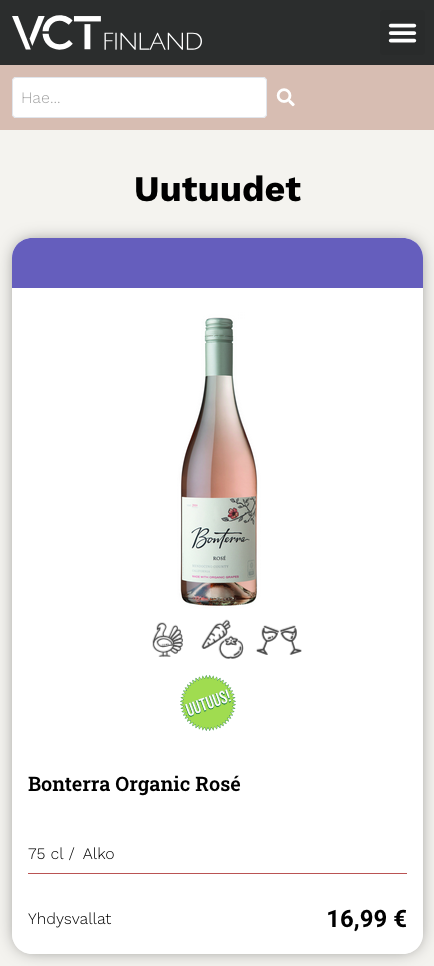 VCT Finland on viinin maahantuonti- ja markkinointiyritys. Ravintolamyynti ja Travel Retail on ulkoistettu pitkäaikaiselle yhteistyökumppanillemme Interbrands Wines and Spirits.